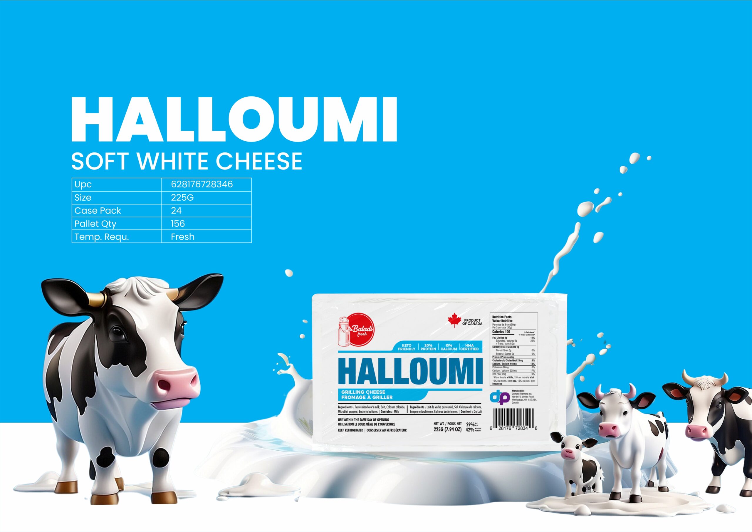 HomeHalloumi Ingredients Pasteurized cow's milk, Salt, Calcium Chloride, Microbial enzyme, Bacterial cultures | Contains: Milk